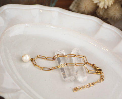 「月の雫珠」国産あこや真珠バロックパール*サージカルステンレス・ブレスレット「スタッドチェーン」|ツバメ舎(ツバメシャ)