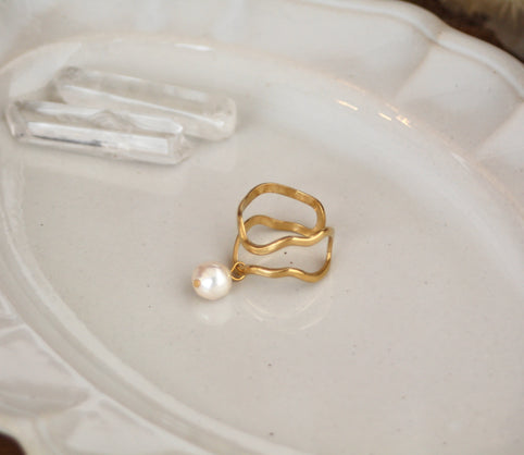 国産あこや真珠バロックパール「月の雫珠」*サージカルステンレス・イヤーカフ片耳(1個)(ウエーブ)|ツバメ舎(ツバメシャ)