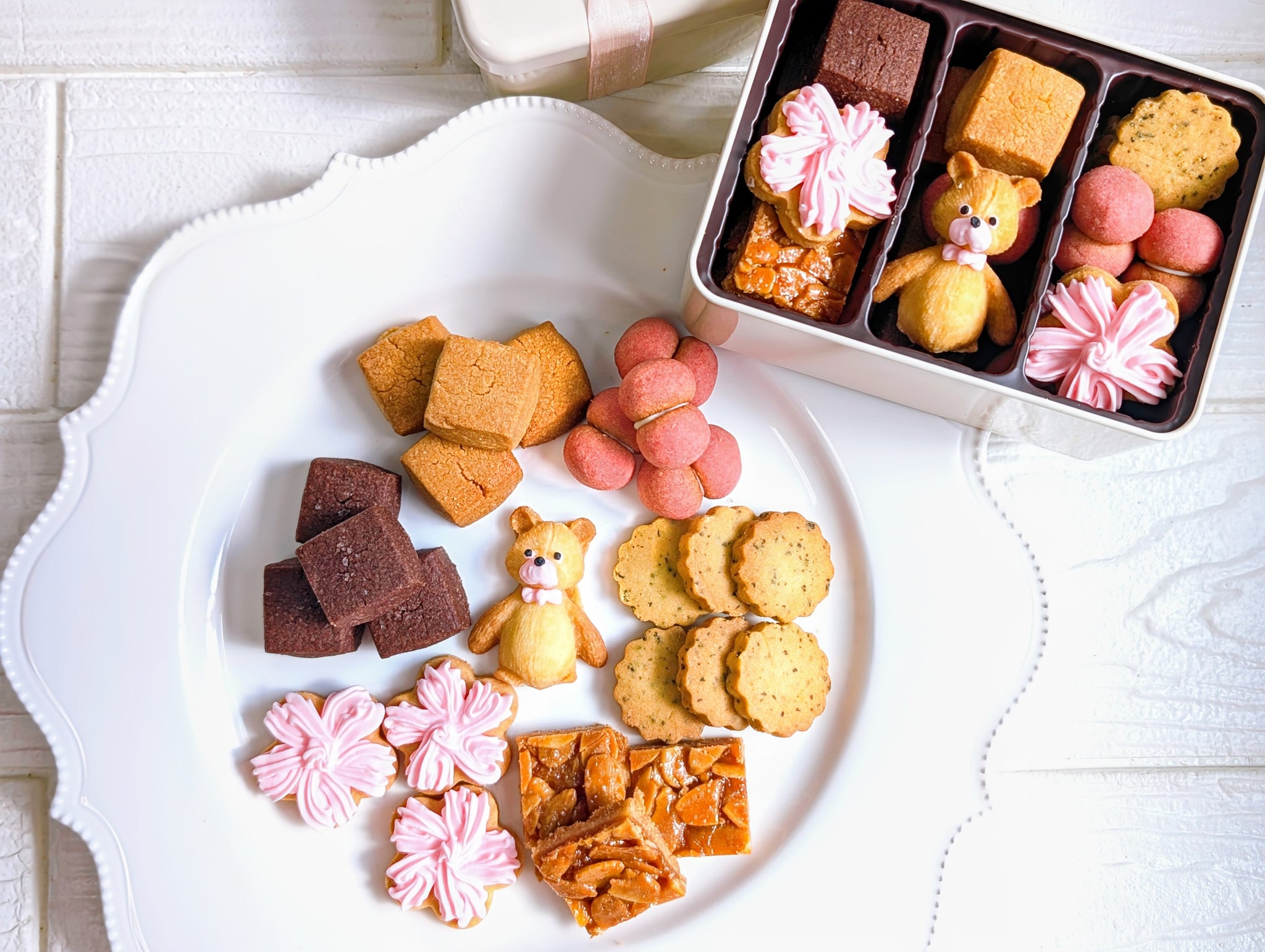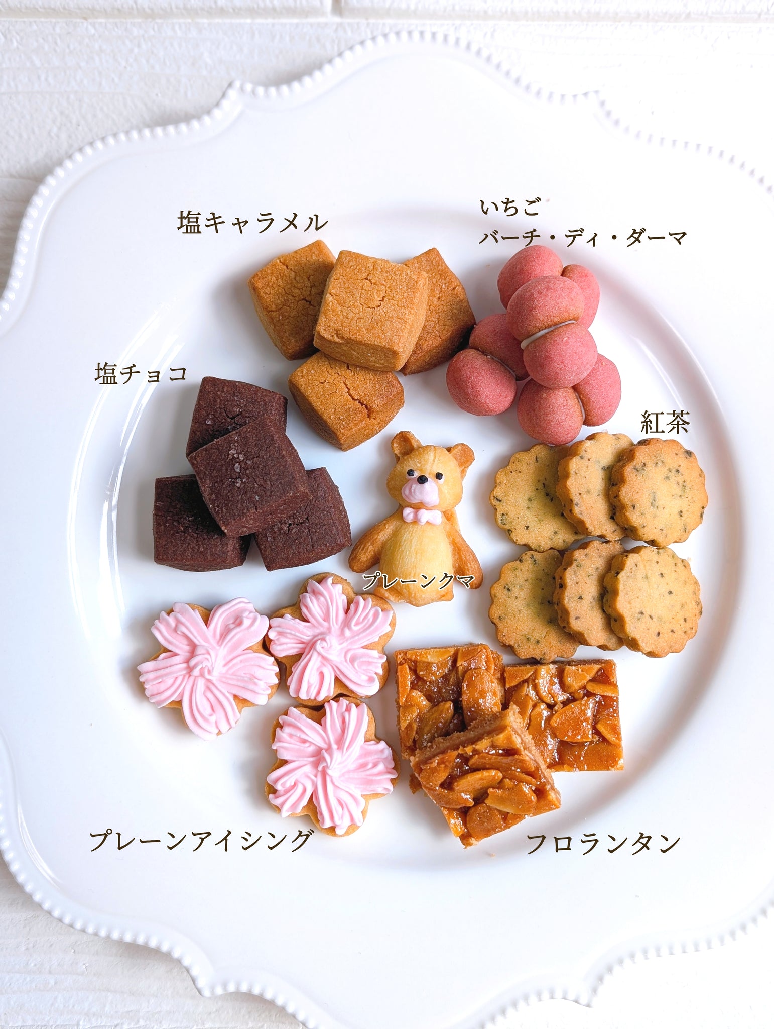 クッキー缶を開けると国産米粉を使用し、心地良いサクホロ感と絶妙な甘さで何個でも食べたくなるクッキーたちが7種類入っています