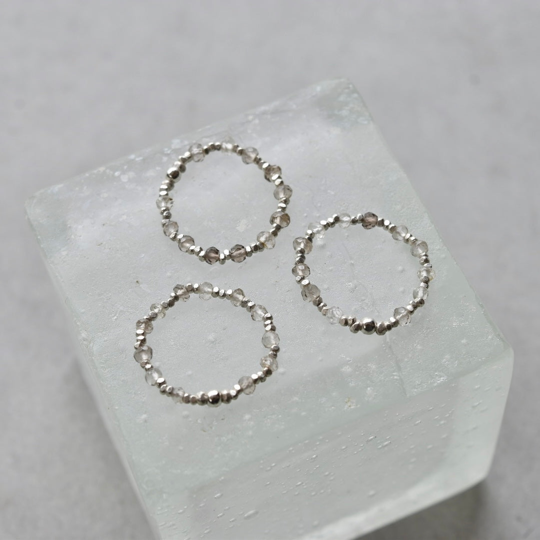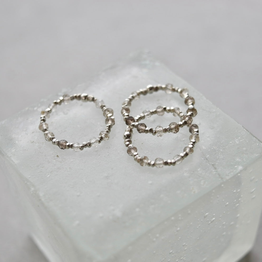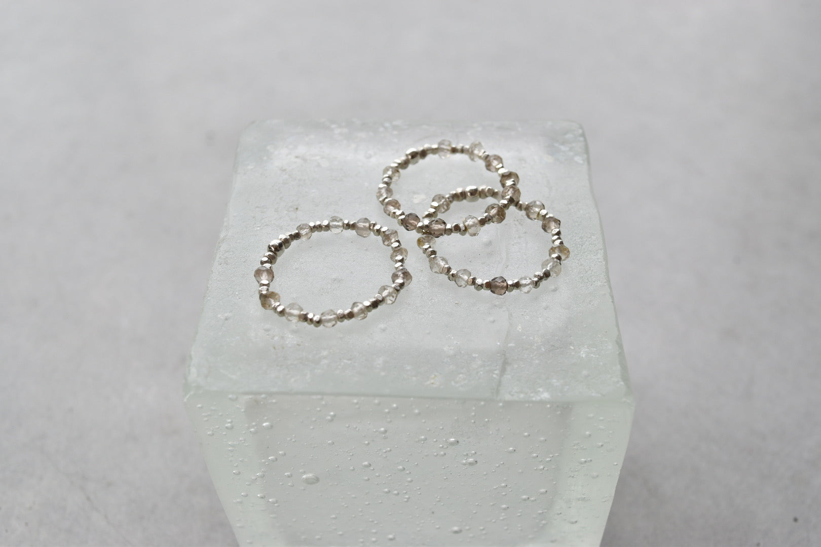 こちらのリングに使用したクォーツのビーズもたまたま見つけた掘り出し物のため、定番商品ではなくビーズがなくなり次第の数量限定の作品です。