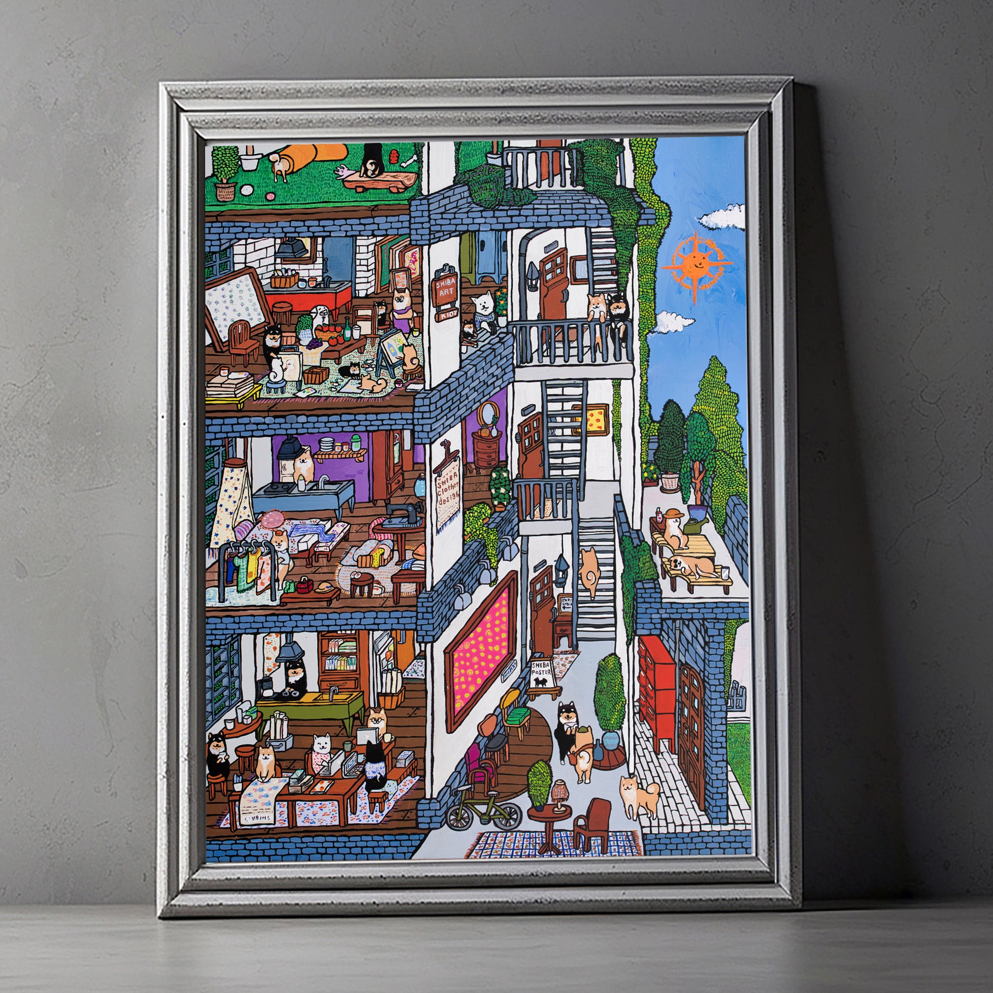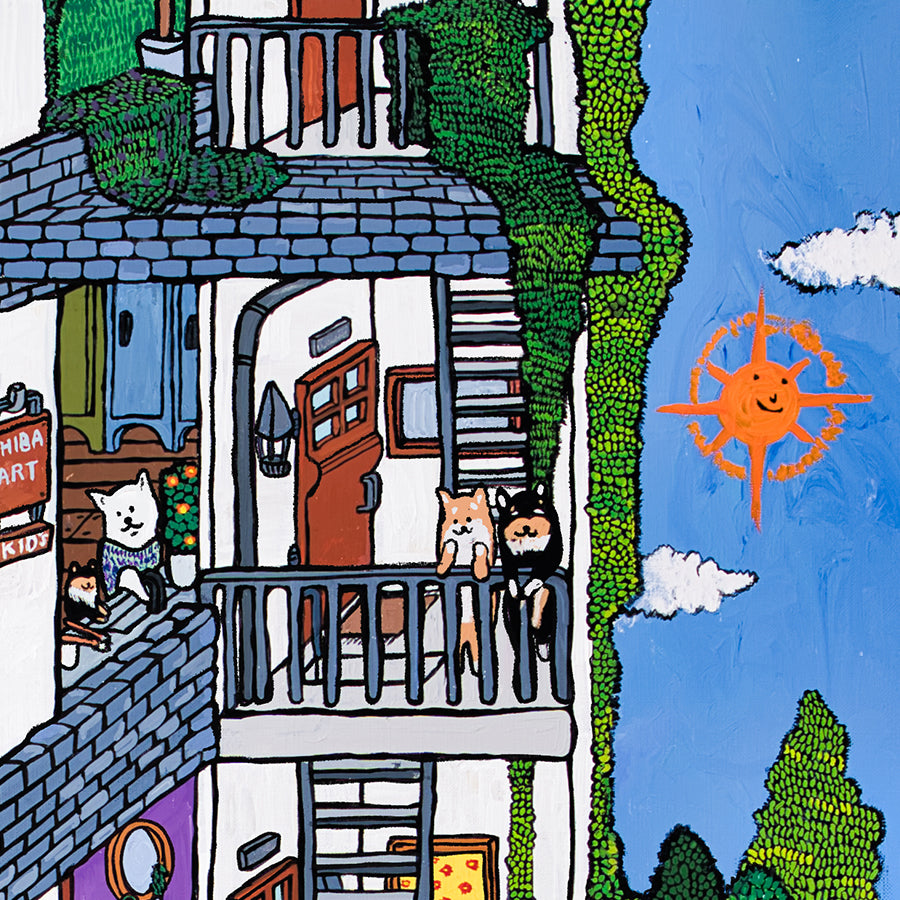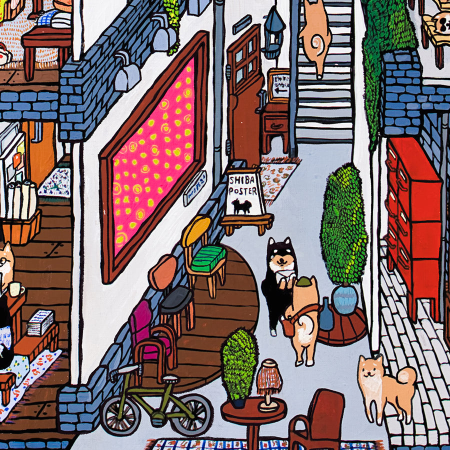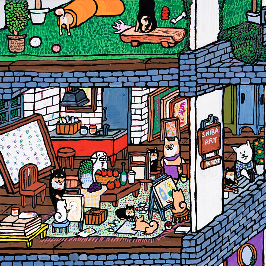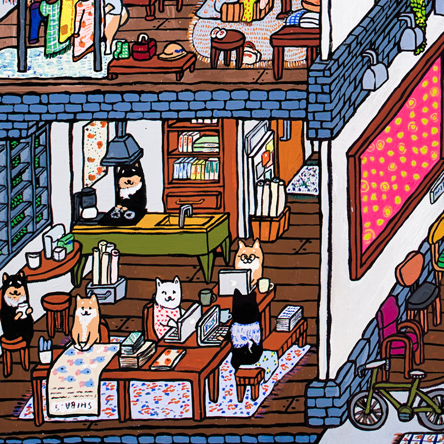 柴犬を中心とした「理想の世界」を描いています。