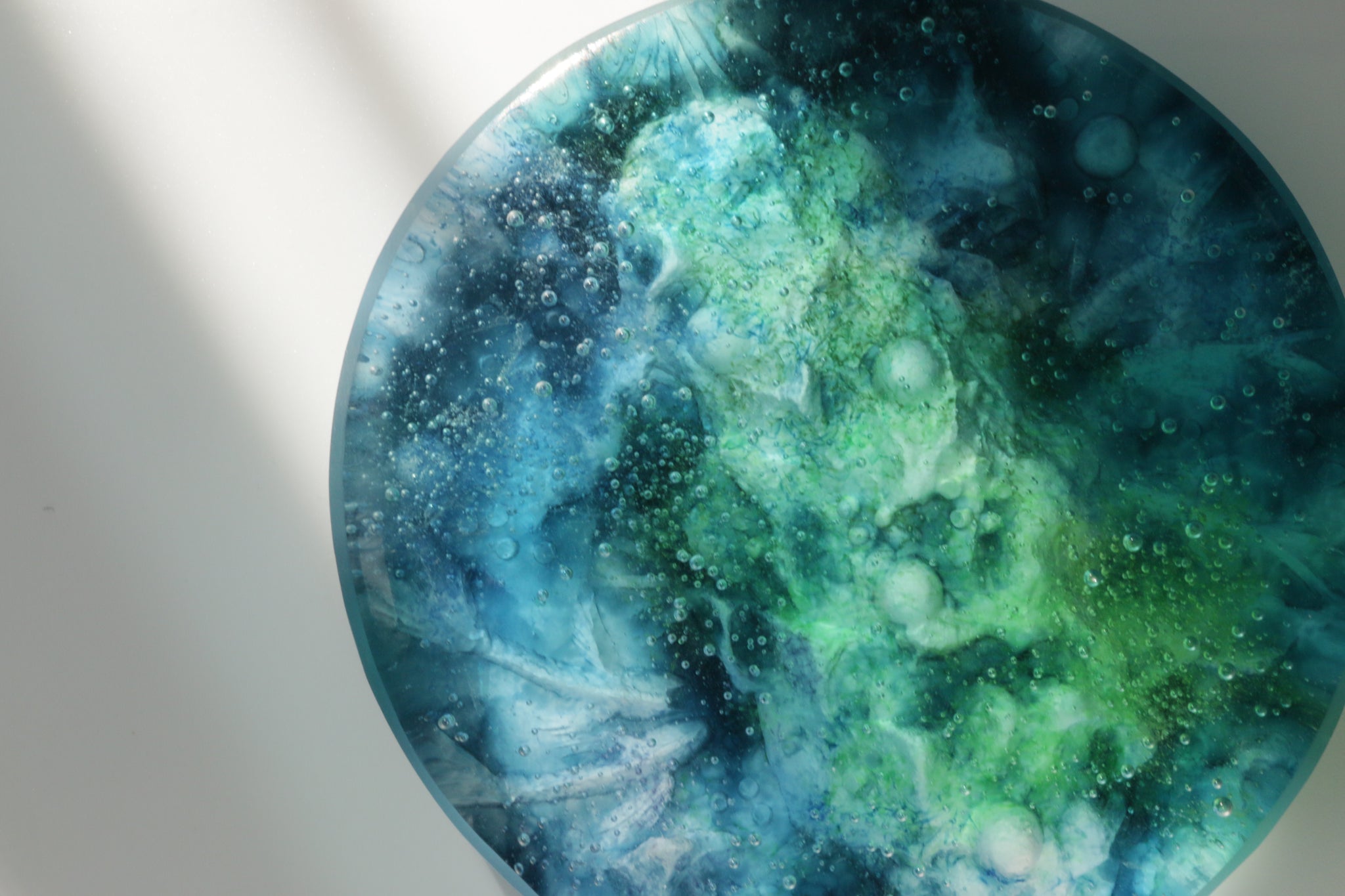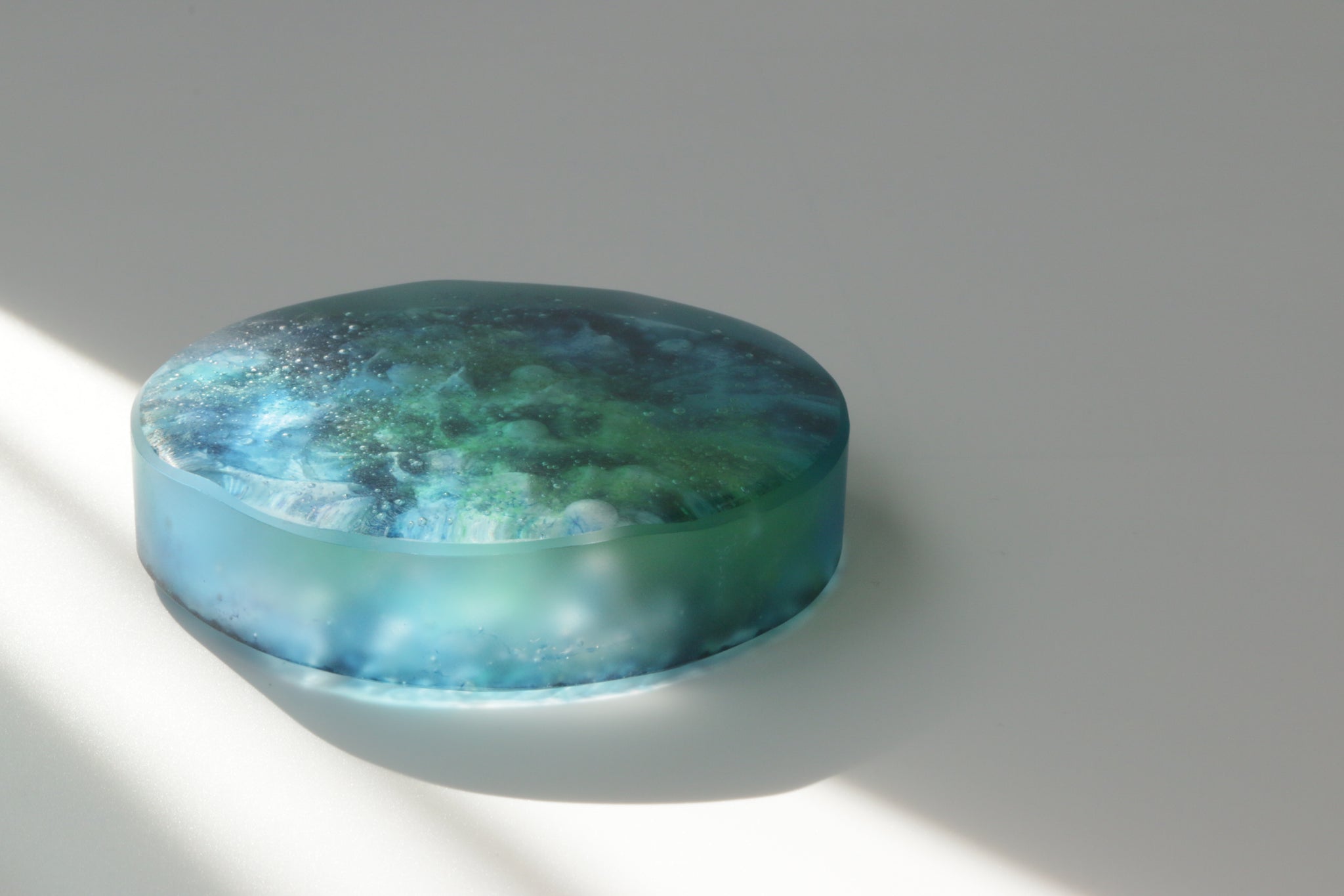 自然光に当たる窓辺などに置いていただけると、気泡やレリーフがより立体的に見え、水の世界を引き立ててくれます。