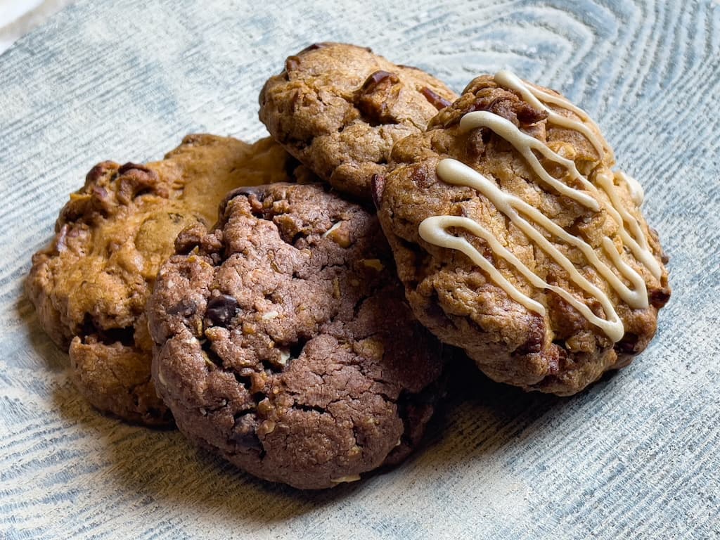 原材料 【メープルアップルクッキー】小麦粉(国内製造)、ブラウンシュガー、バター、くるみ、りんご、アーモンドプードル、メープルシロップ、コーンフレーク、卵、塩/膨張剤(一部に小麦・乳成分・卵・りんご・くるみ・アーモンドを含む) 【ジンジャーアップルクッキー】りんご(長野県産)、小麦粉、バター、グラニュー糖、アーモンドプードル、卵、コーンフレーク、ジンジャーパウダー、塩/膨張剤(一部に小麦、乳成分、卵、りんご、アーモンドを含む) 【アップルシナモンクッキー】りんご(長野県産)、小麦粉、バター、グラニュー糖、アーモンドプードル、卵、コーンフレーク、シナモン、塩/膨張剤(一部に小麦、乳成分、卵、りんご、アーモンドを含む) 【ナッツココア】小麦粉(国内製造)、グラニュー糖、バター、アーモンド、アーモンドプードル、チョコチップ、コーンフレーク、卵、ココア、塩/膨張剤(一部に小麦、乳成分、卵、アーモンドを含む)