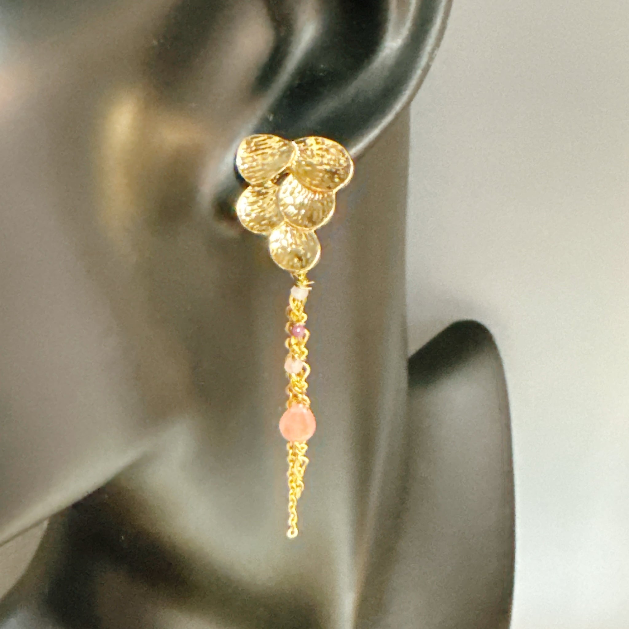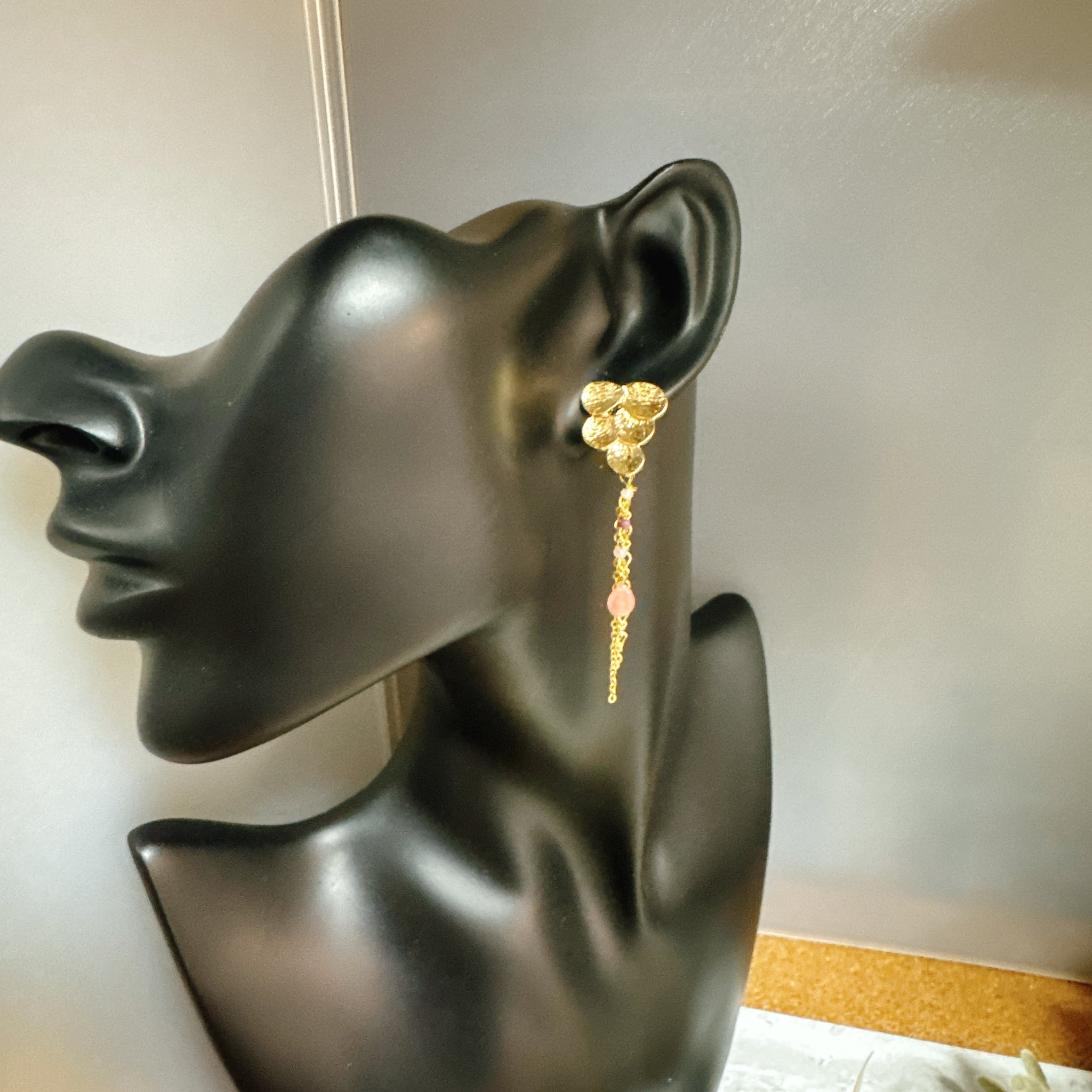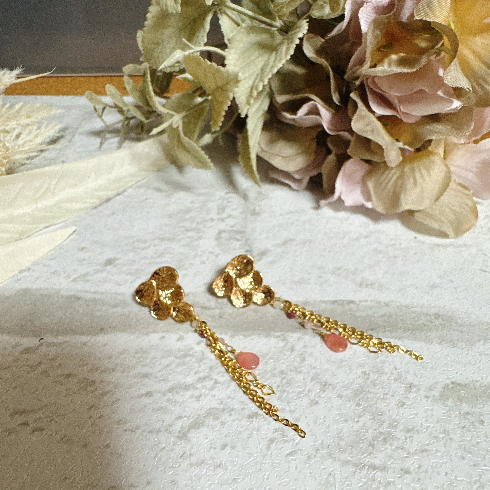 ドロップ型のインカローズを揺れるデザインのピアスにしました。