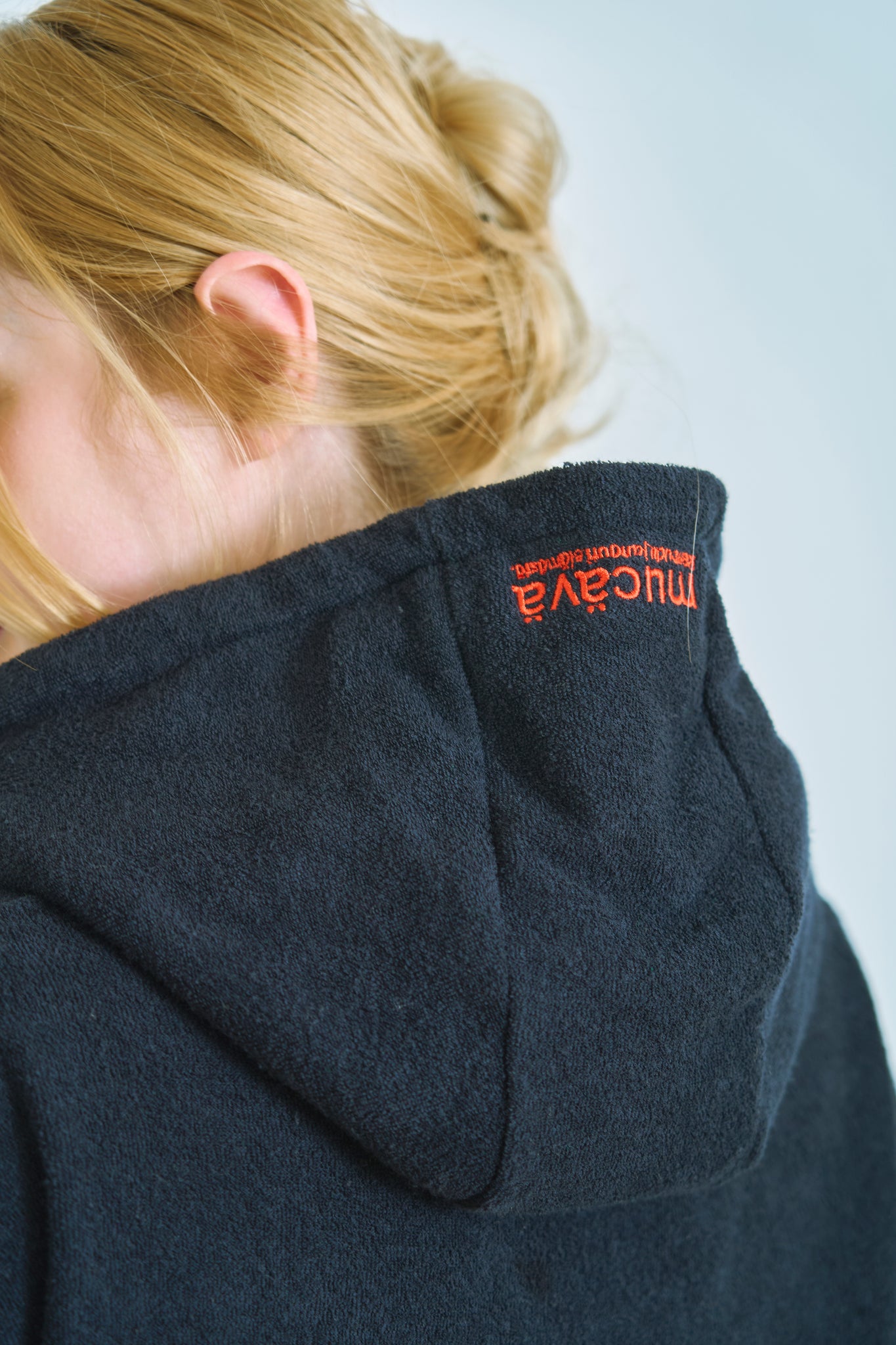 両面パイルロングフードワンピネイビー|mucava(ムカバ)