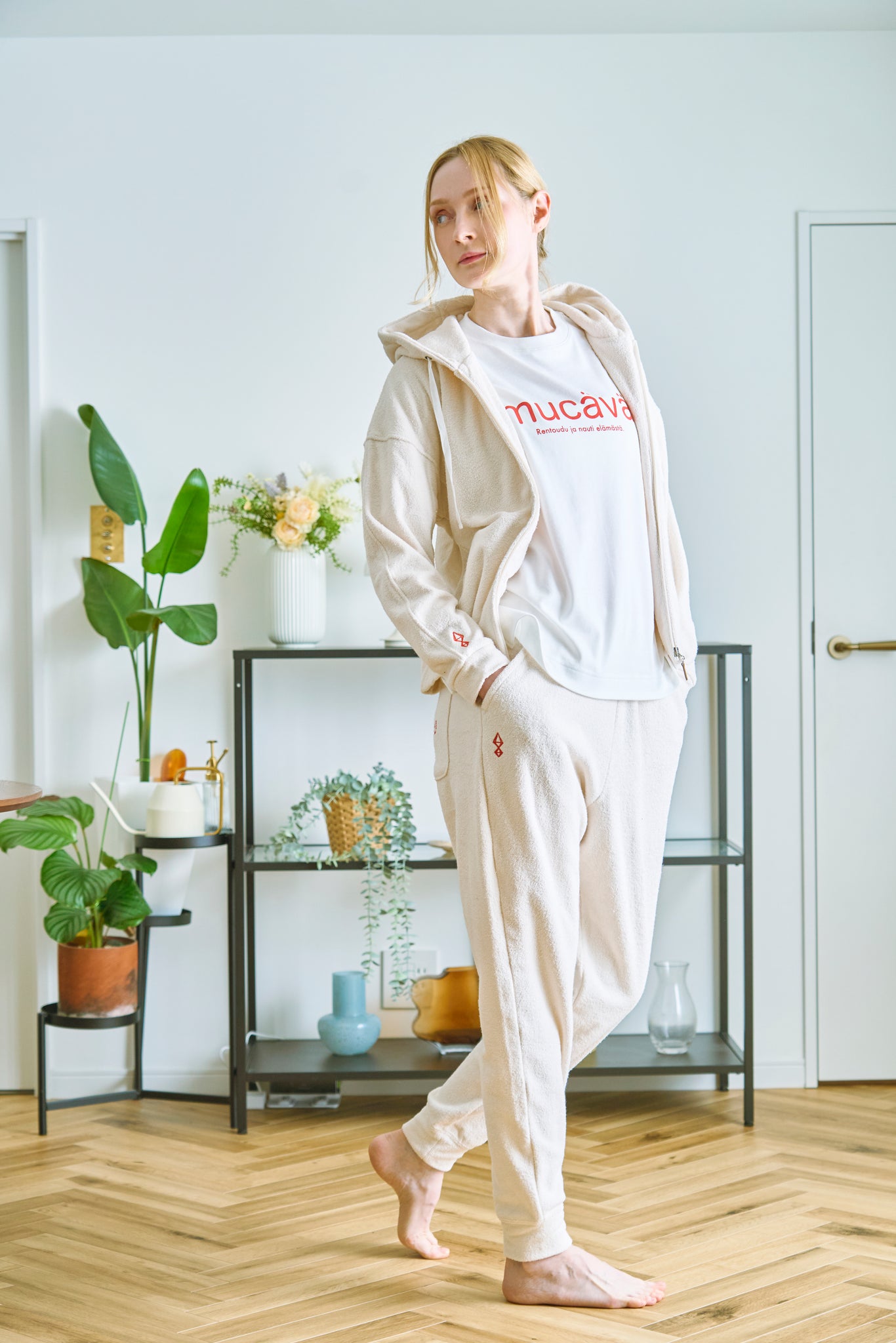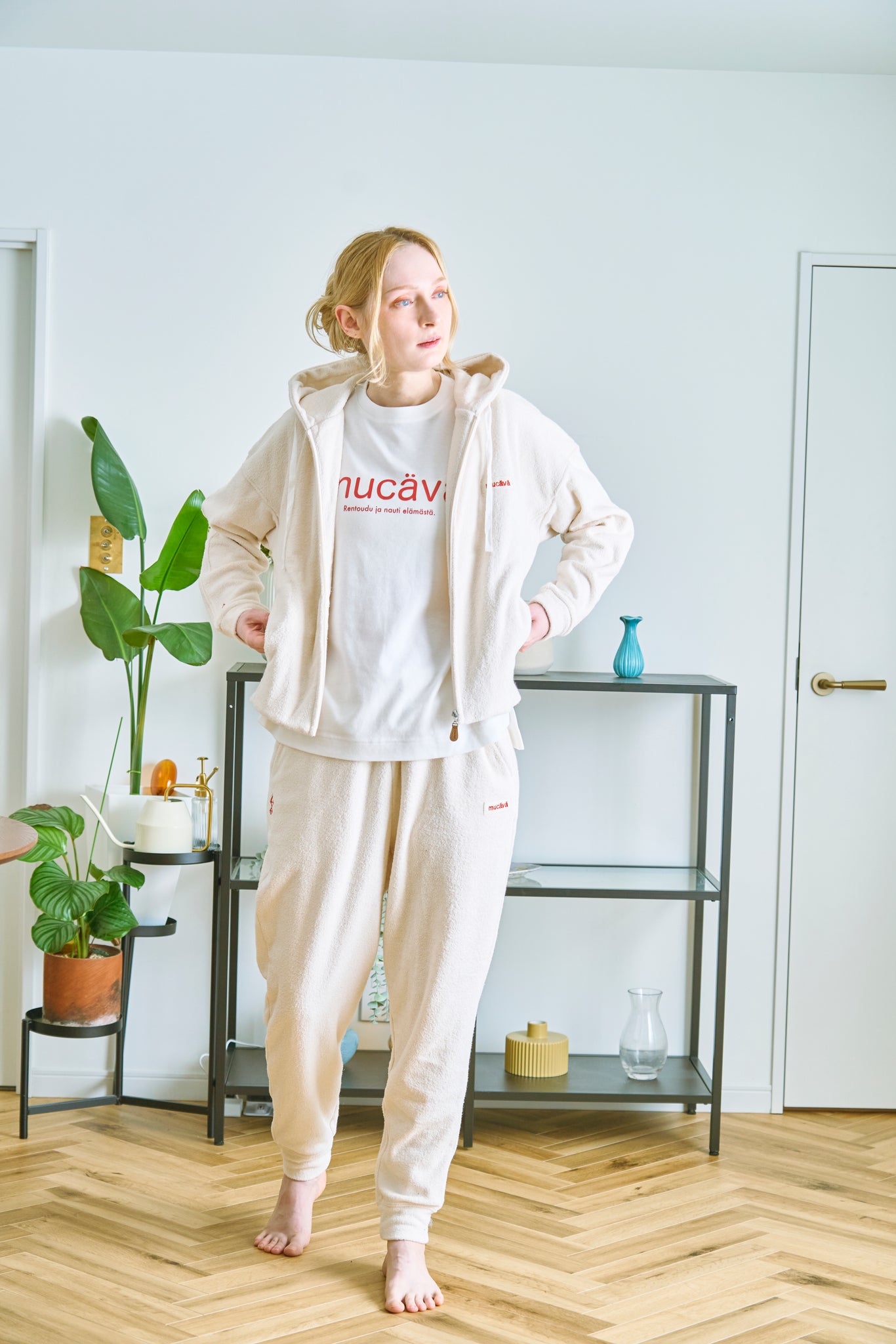 両面パイルZIPパーカー ホワイト|mucava(ムカバ)
