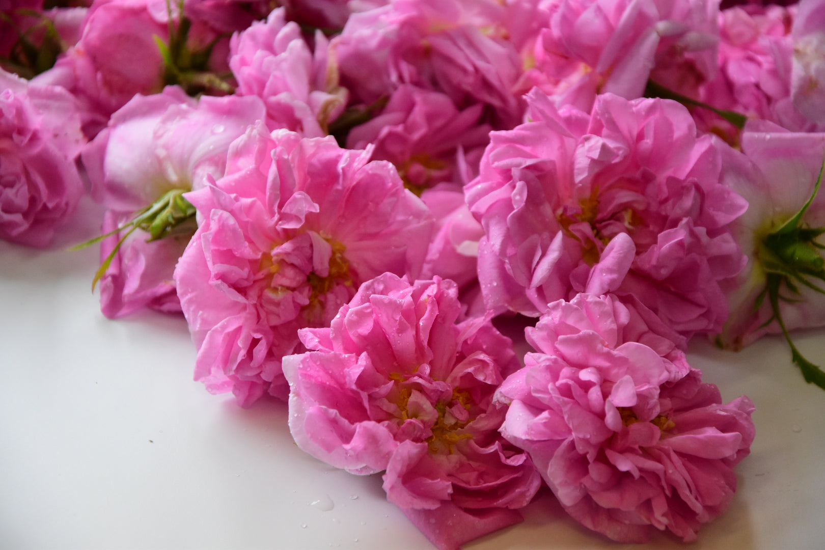 農薬や化学肥料を使わず育てたダマスクローズを中心に、