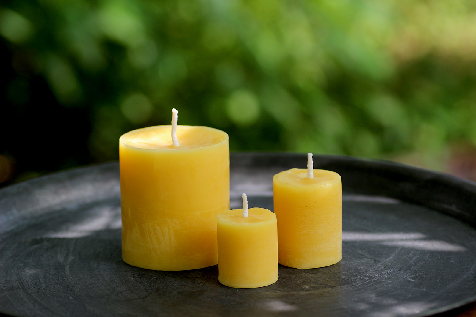 キャンドル自体の色も灯りに透かさ蜜蜂たちが集めてきた自然な花粉の色です。