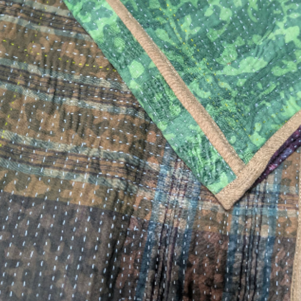 「Wear the memory of the fabric. A one-of-a-kind vintage kantha.」 Vintage Indian fabrics, beloved for decades, have been meticulously restored to modern times through meticulous handwork.