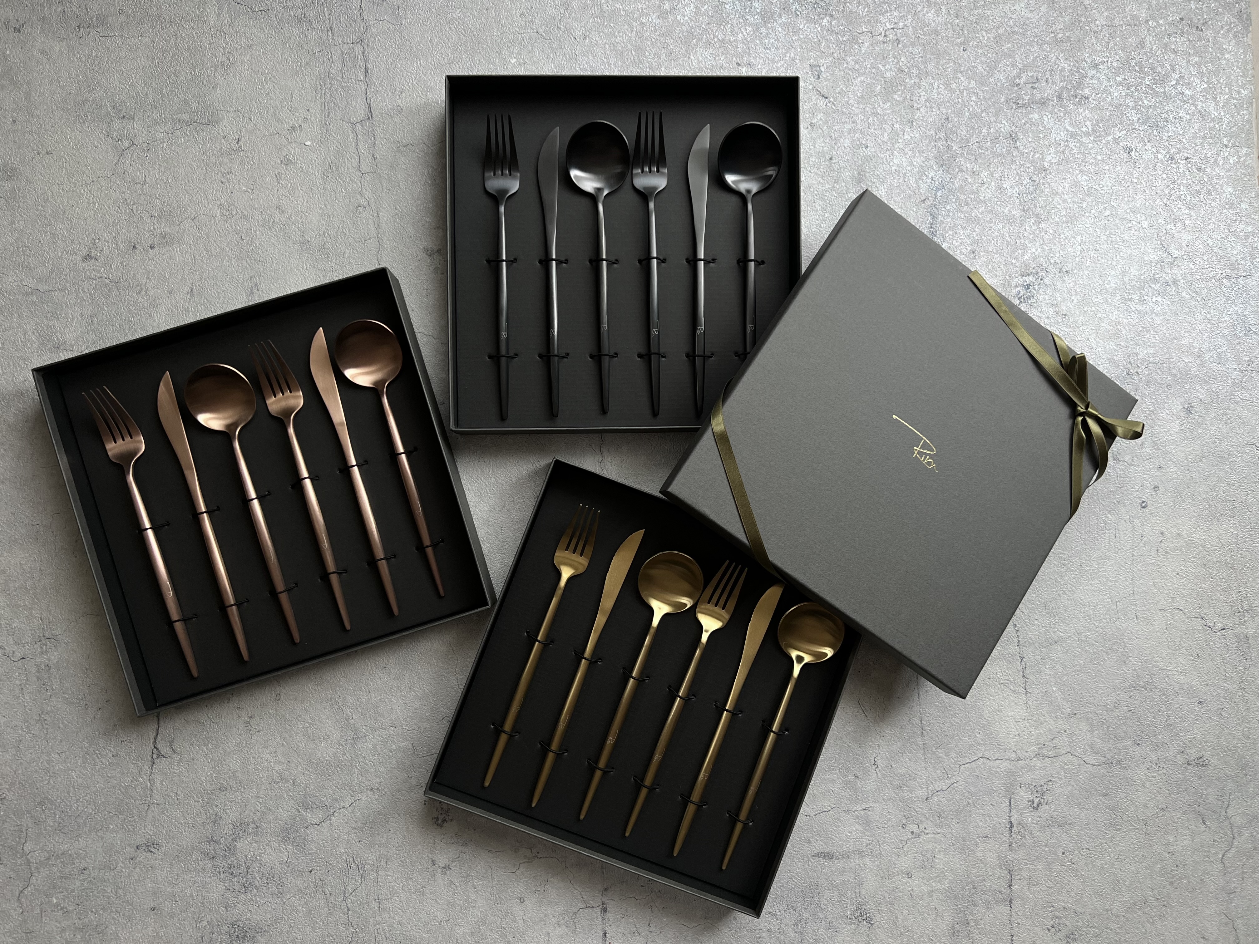 丁寧に仕立てたRimオリジナルカトラリーを、専用のギフトボックスに収めてお届け。