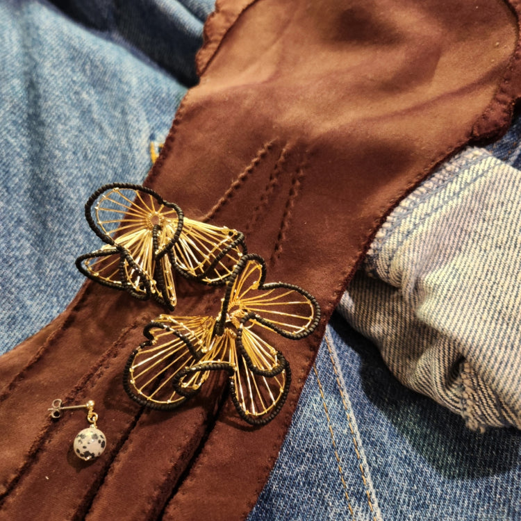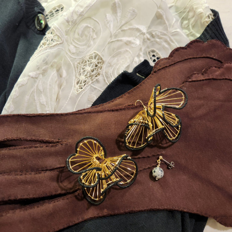 1本の真鍮線から作り上げる、存在感のあるピアスで、全て1点ものになります。 日常身に着けるものに少しアート感を効かせた個性的な作品に仕上げています。 フリーハンドでしか出来ない、不完全的な線、絵で描くような線でモチーフを仕上げてあります。線が細く、着けた際は、周りに馴染みやすく、思ったよりも目立ちません。なお、軽いのが特徴です。